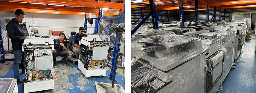 We import used photocopying machines from all over the world and re-manufactured them into sparkling new reconditioned machines. The re-conditioned machine outlook, performance, print quality and reliability are similar to new machines. These machines are then sold or rented to our customers. All our sold or rented machines to our customers will maintained fully by our company to ensure full customer satisfaction of our products.